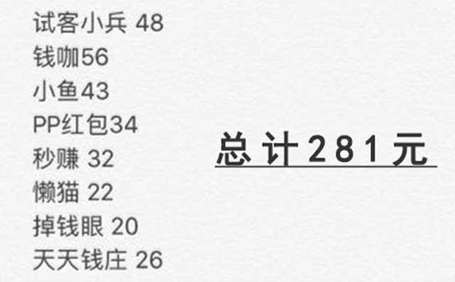 既然我们说的是通过赚钱平台赚几天的快钱,要的就是奖励最高,提现最方便,操作最容易的平台互相搭配完成。非常推荐老牌的几个平台,比如试客小兵、钱咖这两个一定要下,详细搭配方案,欢迎关注我的微信公众账号:ssgstar,一起交流心得。